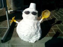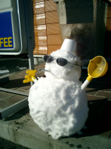 | 行きの道中で杏美ちゃんと菜央ちゃんが遊んでいるのを見つけたので、二人の気を引くために雪だるまを作成しました。 左の雪だるまは「普通」、右は「不良?」ですね |