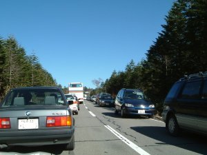麦草峠付近です 観光シーズンでしたので車がとても多かった! 反対車線の車は駐車車両です。 この状態ではバスが離合できないのは明らかです ブルドーザで一気に排除してもらいたいと思いました 次回行った時には駐車車両のナンバーを撮るか〜 |