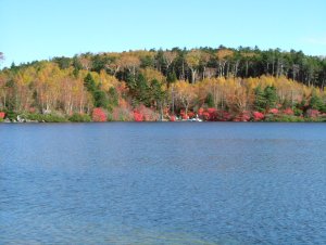 改めて見ると紅葉、黄葉と常緑樹のコントラストが良い ですね。 |